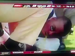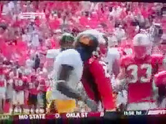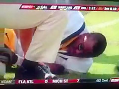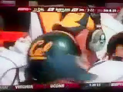 Football Player Pukes From Hit