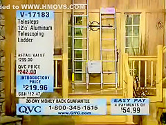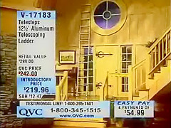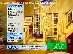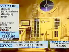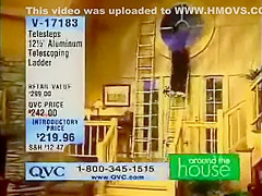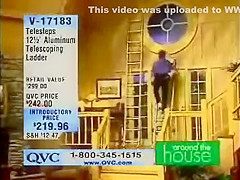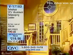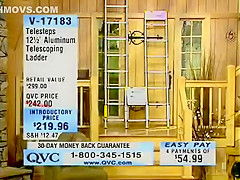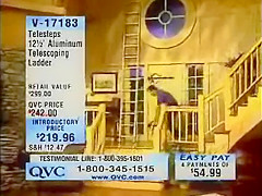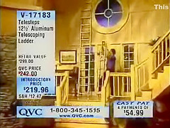 This guy falls off the ladder he is trying to sell on a QVC infomercial.