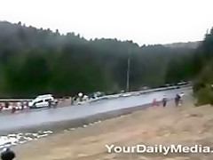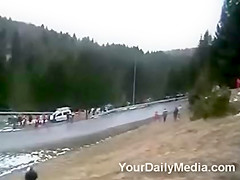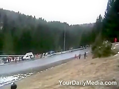 When will the spectators learn not to stand in the path of rally cars? They get wiped out.