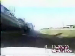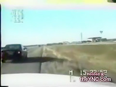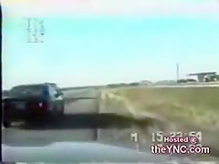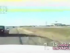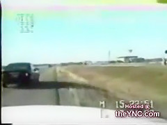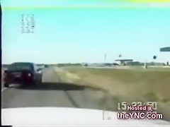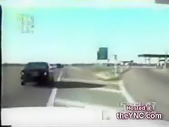 A cop is pulling over someone when they all of a sudden get rear ended very bad!