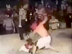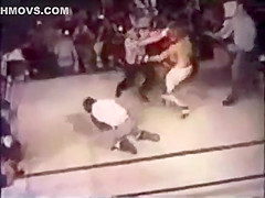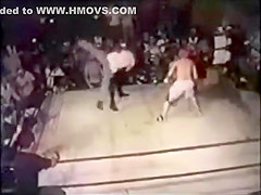 This referee dont stand for any crap. He choke slams the boxer.