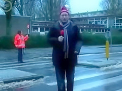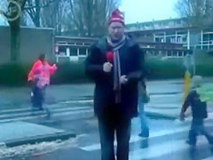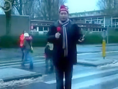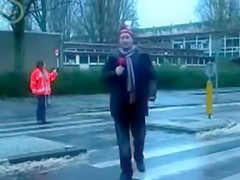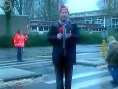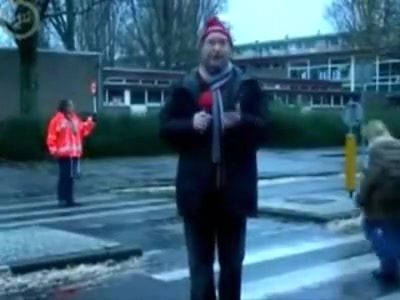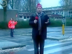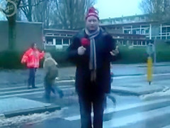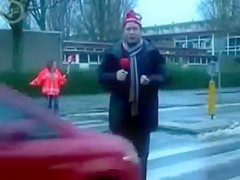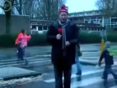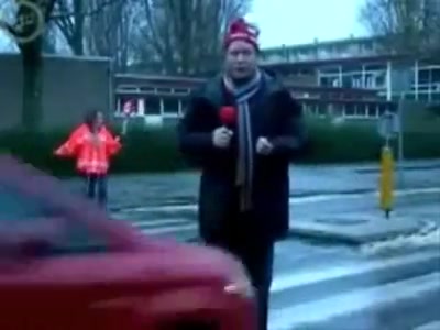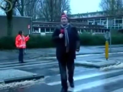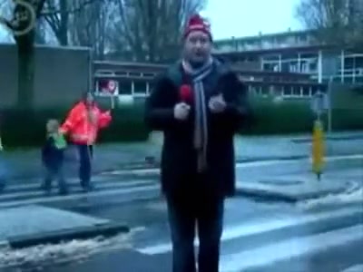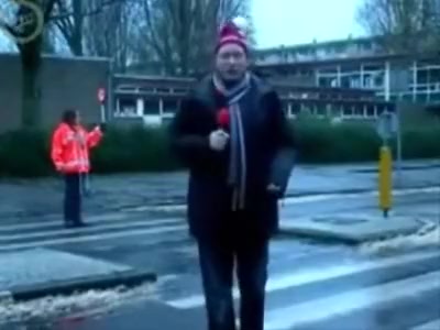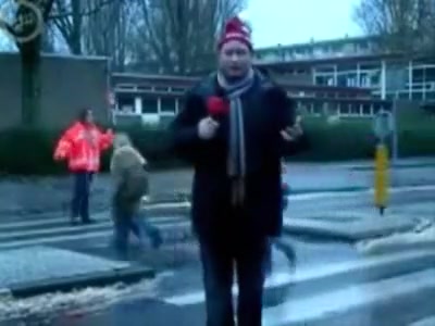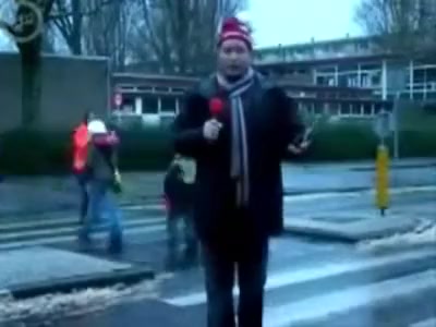 Some reporter gets taken out while doing a newscast in the middle of the street. Ouch!
