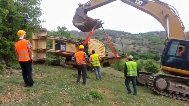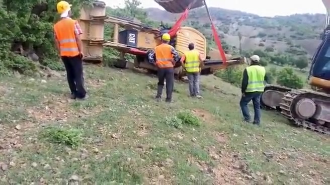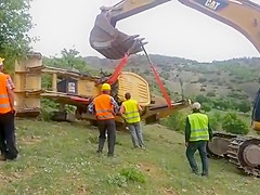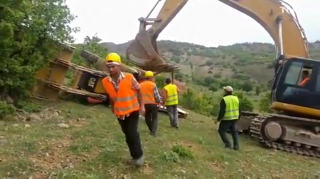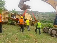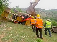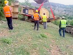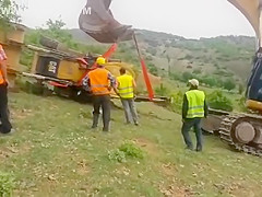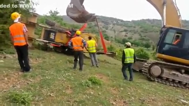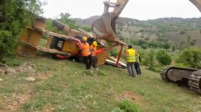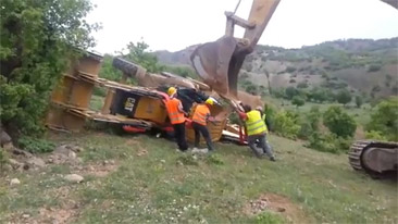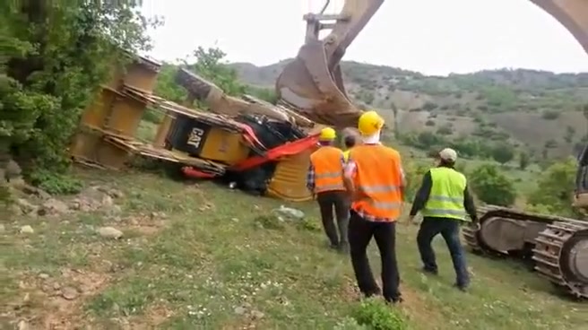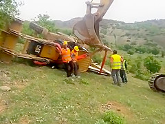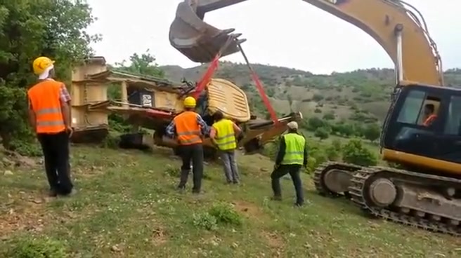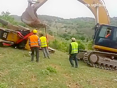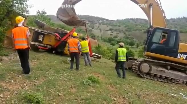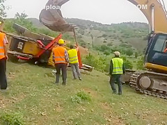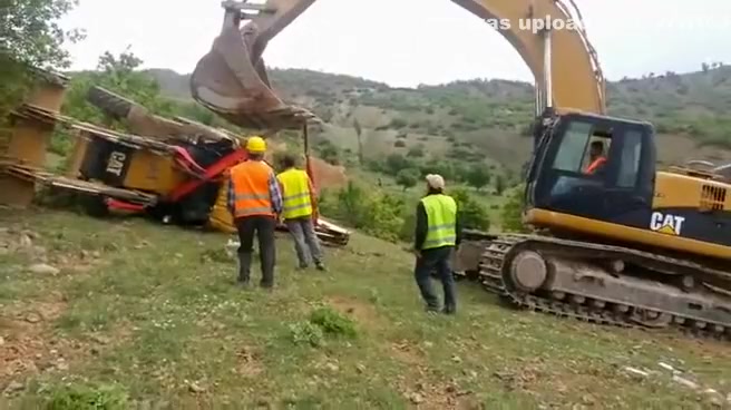 An attempt to flip a tractor right side up doesn't go as planned.