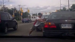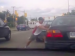 Crazy Guy Bashes Windshield With His Head