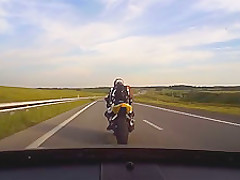 Road Rage Motorcycle vs Car, Instant Karma!