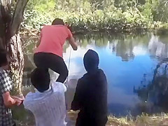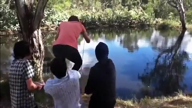Some people just don't know how to use a rope swing.
