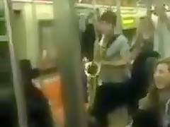 Sax Battle in NYC Subway
