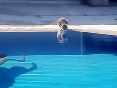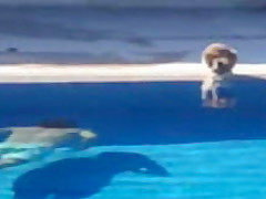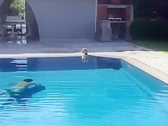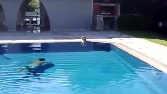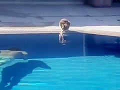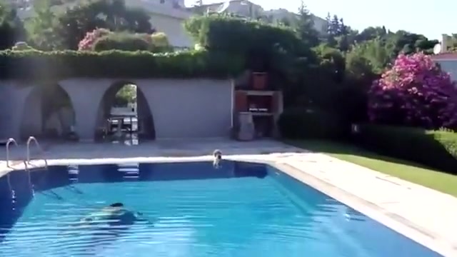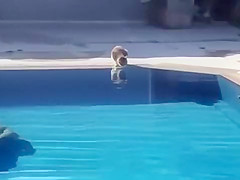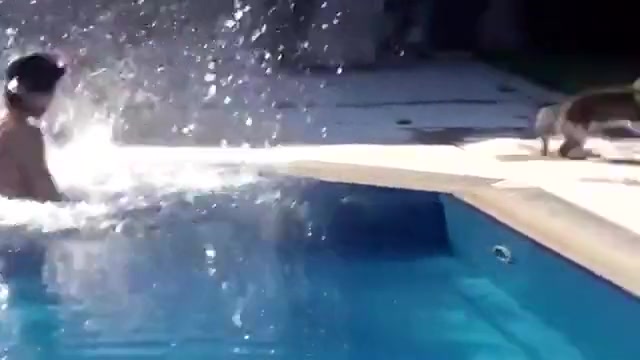 This kid scares the hell out of his cat having a drink from the pool.