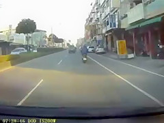 Scooter Driver Gets In Bad Accident While Not Paying Attention