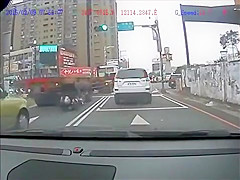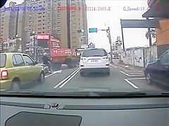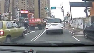 Close Call For Biker Who Lands On Car Roof After Crash