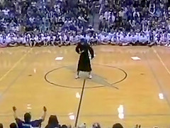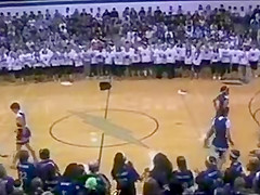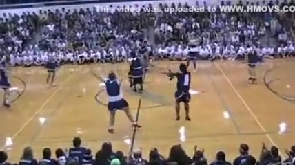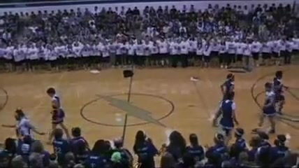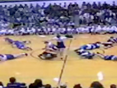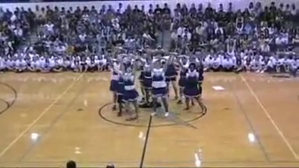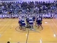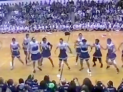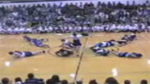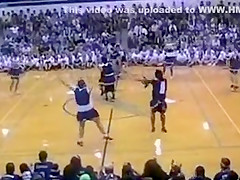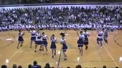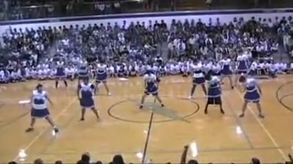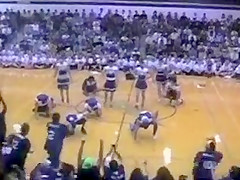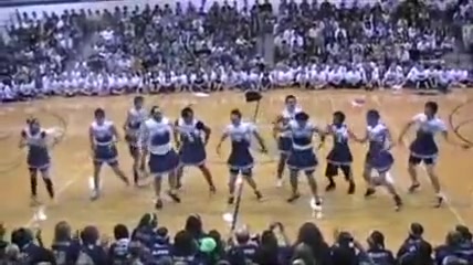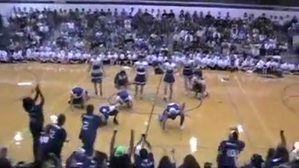 The Senior Powderpuff Cheerleaders perform an all new dance for the halftime show of the student vs. staff basketball game at Carroll High School.
