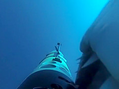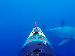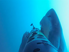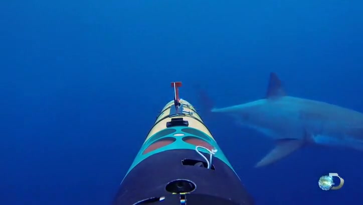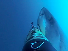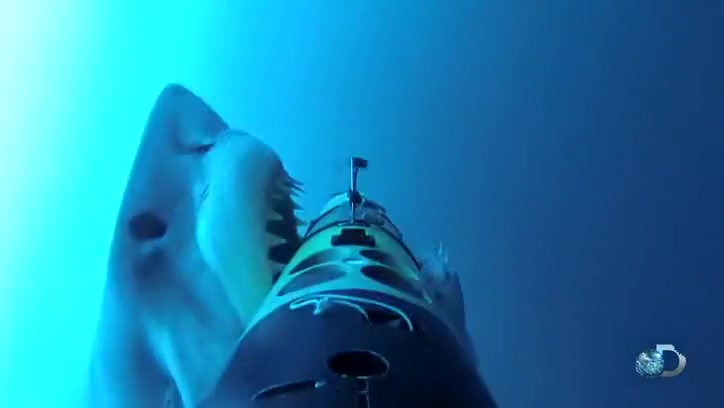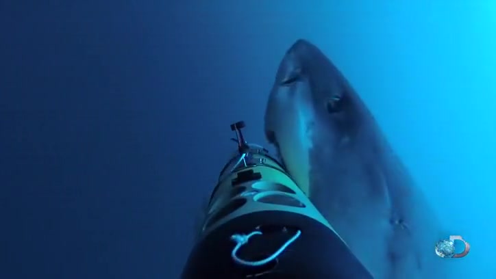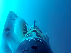 A shark appears out of nowhere for a surprise attack on a camera.