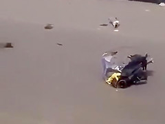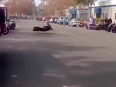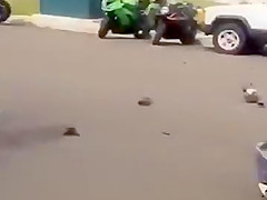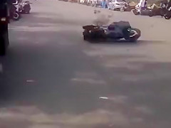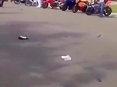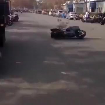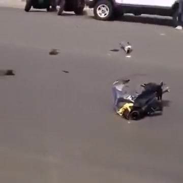 This guy attempts to make a flashy entrance but instead totals his bike.