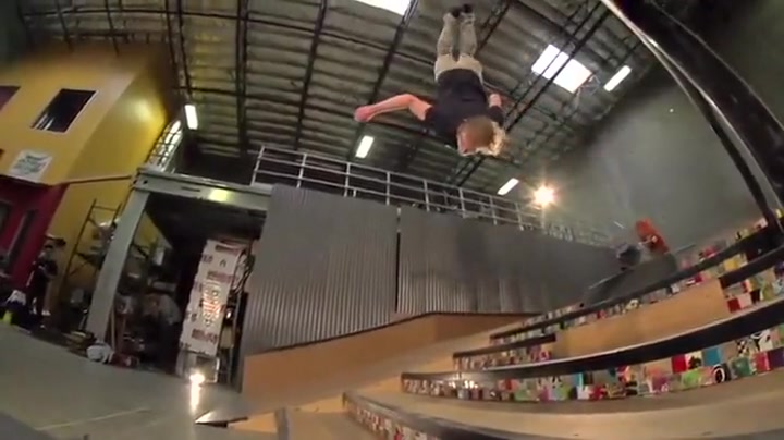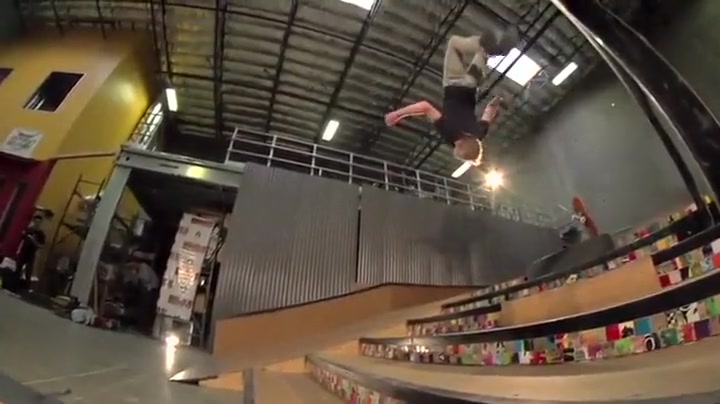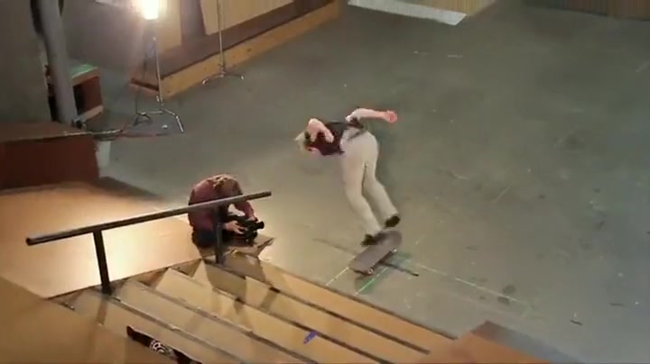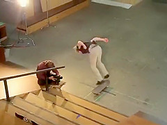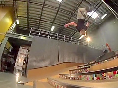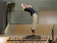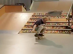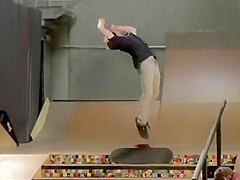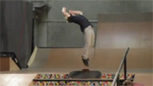 Adam Miller is well known in the skateboarding world for his creative tricks. Here he pulls off perhaps his best yet. Miller skates towards a set of six stairs, backflips off one skateboard and then lands perfectly on another board placed at the bottom of the stairs