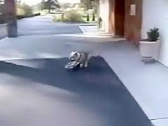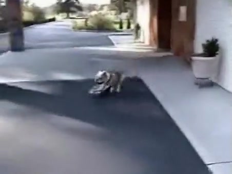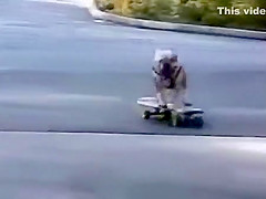 This dog has some serious skills. He can skateboard.