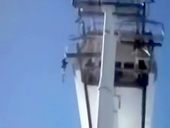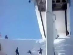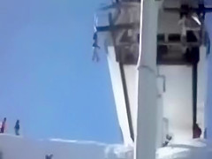 This kid falls about 50 feet after hanging from a Ski Lift. Ouch!