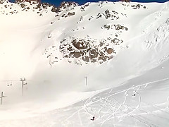 A snowboarder causes a huge avalanche.