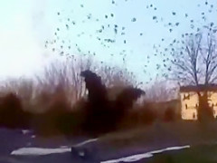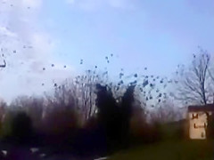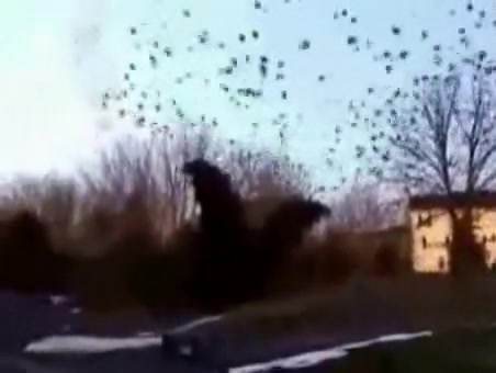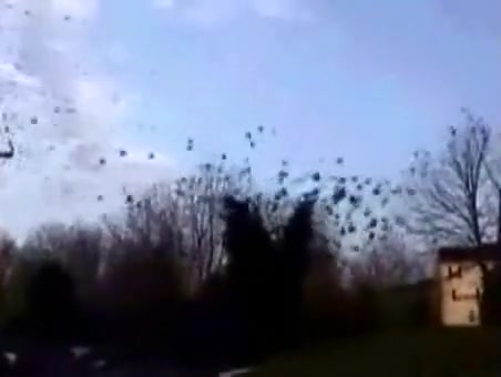 Hundreds of birds topple 2 trees when they all try to land on them.
