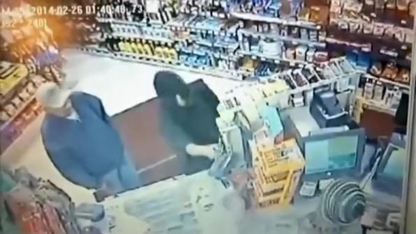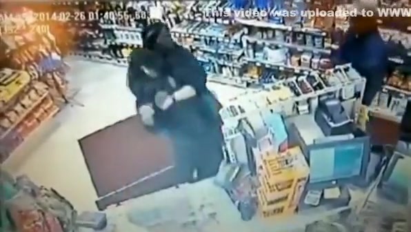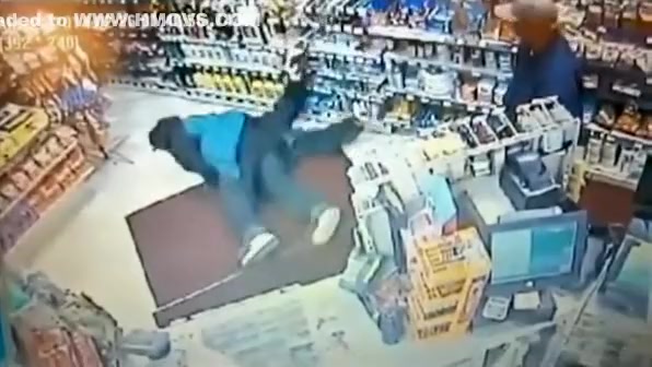 A customer takes things into his own hands and stops a robbery by body slamming the perp.