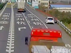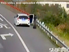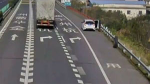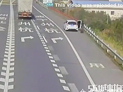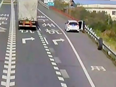 A huge truck tire came off and goes right for this unsuspecting woman.