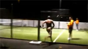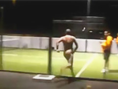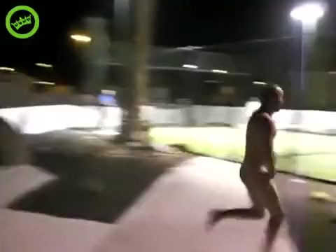 This guy is trying to imitate Frank the Tank from Old School and go streaking through the quad. The only problem is that he doesn't realize there is a large glass pane in front of him.
