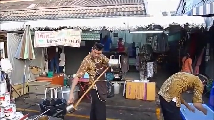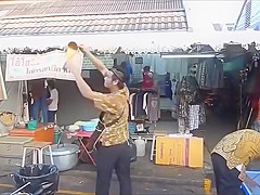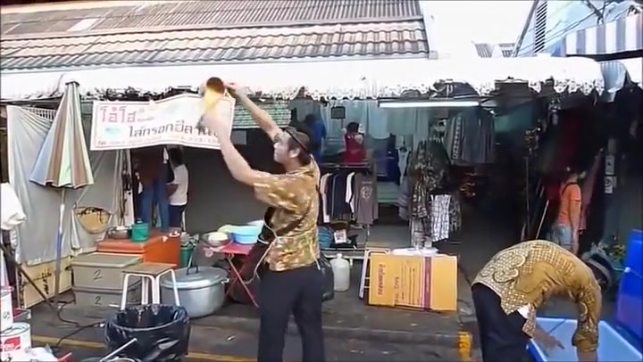 Watch a street vendor defy gravity.