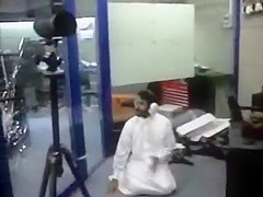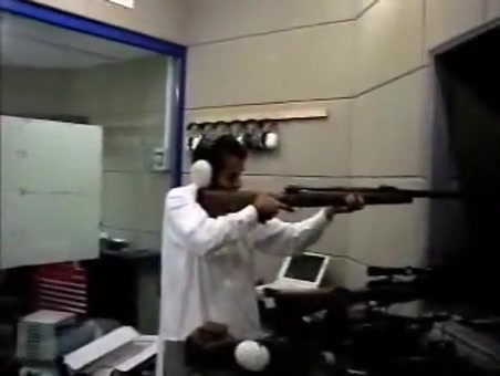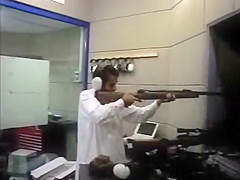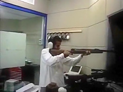 This arab tries to shoot a powerful gun and gets knocked over when it fires.