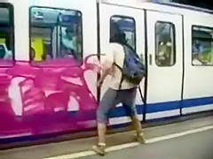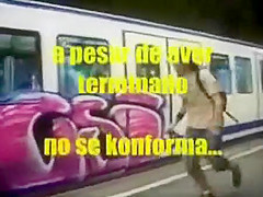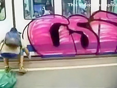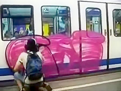 This kid does some nice Graffiti on a subway while everyone watches him.