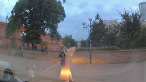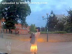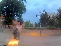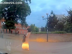 A super drunk girl has a very hard time walking in a straight line and takes a pretty bad digger.
