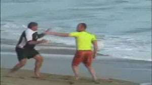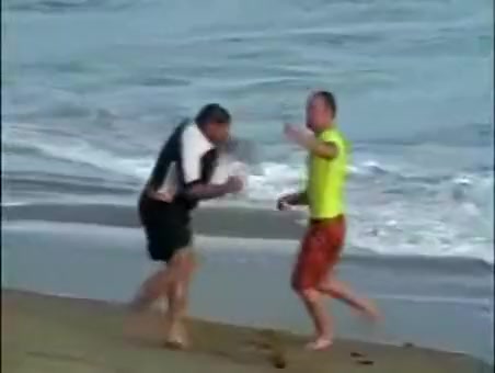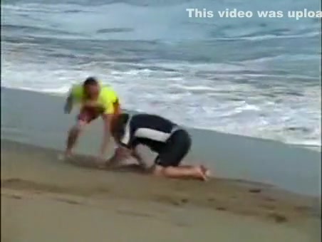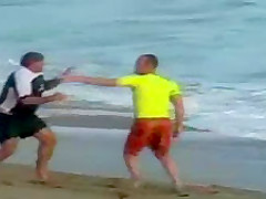 A couple of surfers get into a brawl. Nothing better then a good beating.