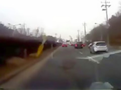 Out of nowhere this woman's car gets totaled. She's okay.