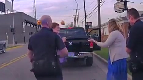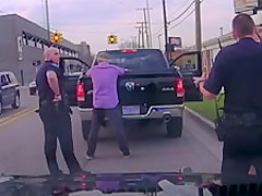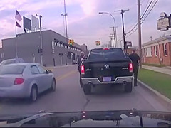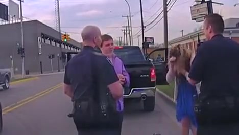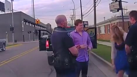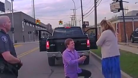 A man proposes to his girlfriend during a traffic stop.