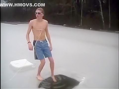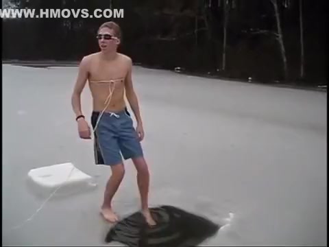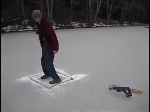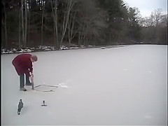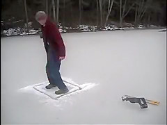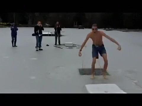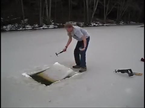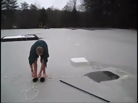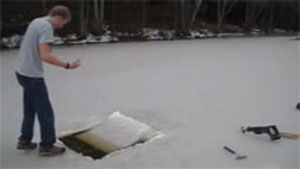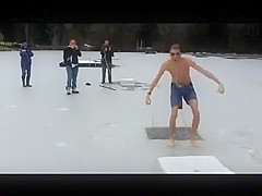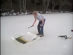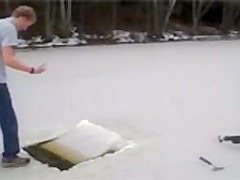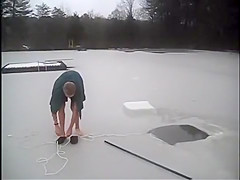 This guy chops a couple holes in a frozen pond and goes swimming under the ice.
