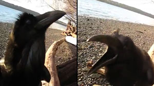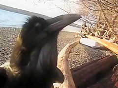 A random raven stumbles across a GoPro at the beach and apparently he can talk. Listen to him say "Its a good boy" to the camera.
