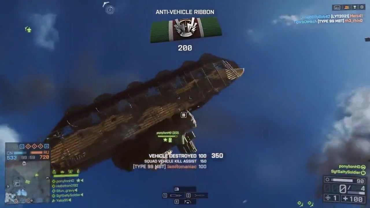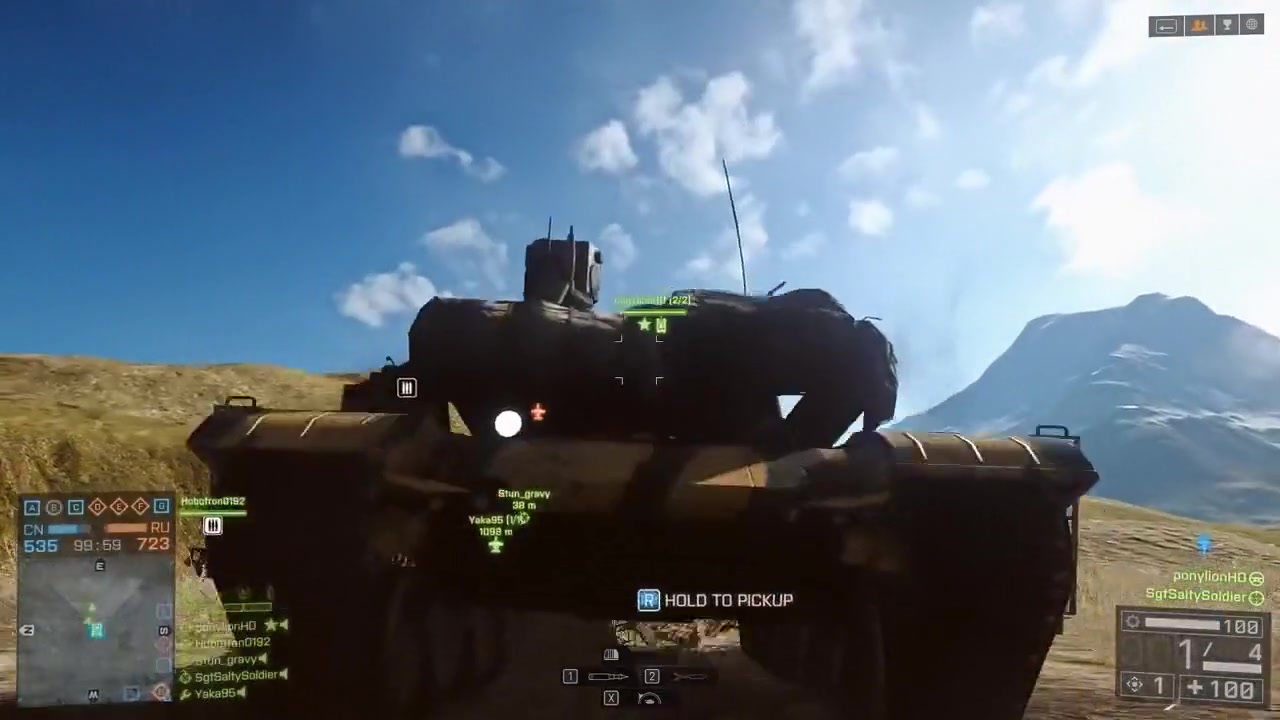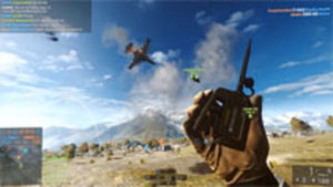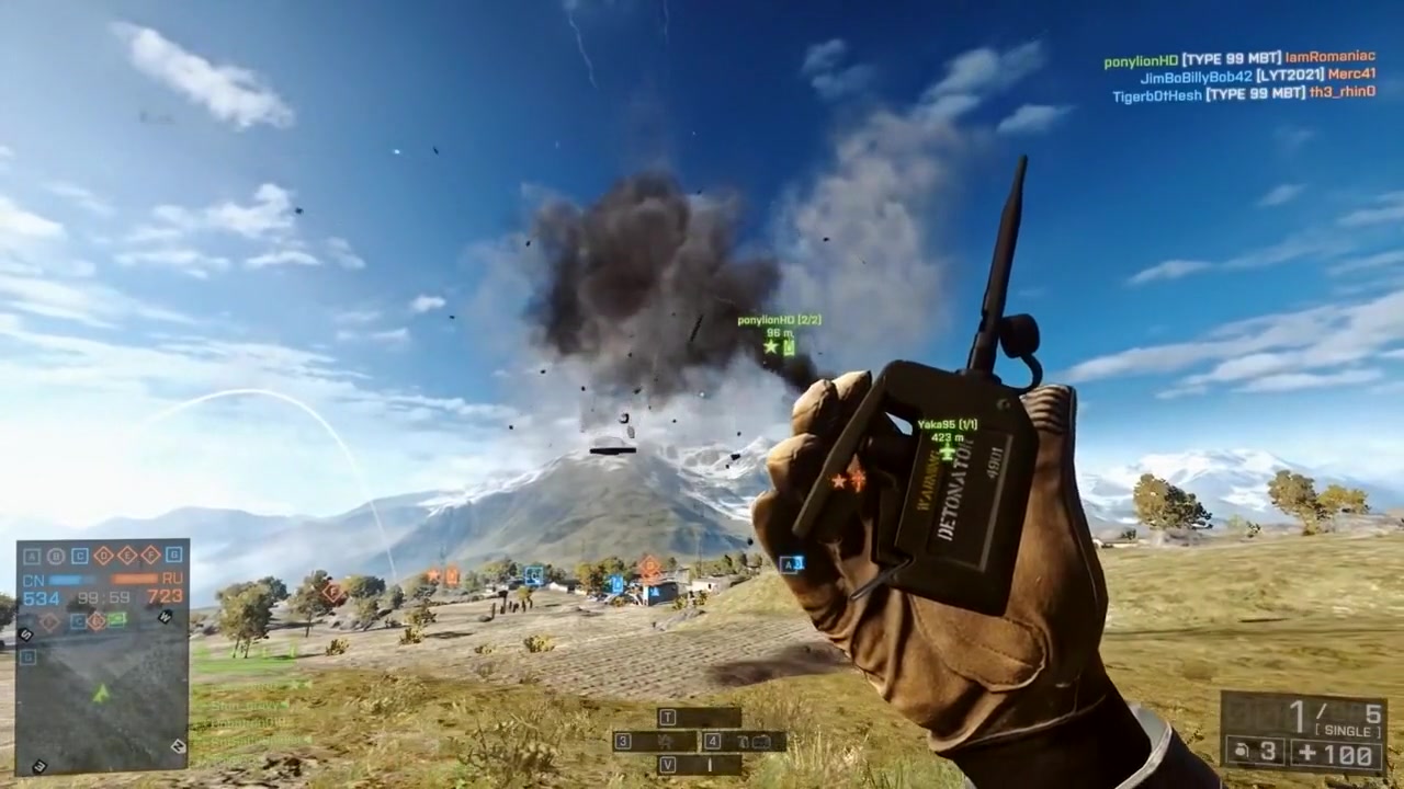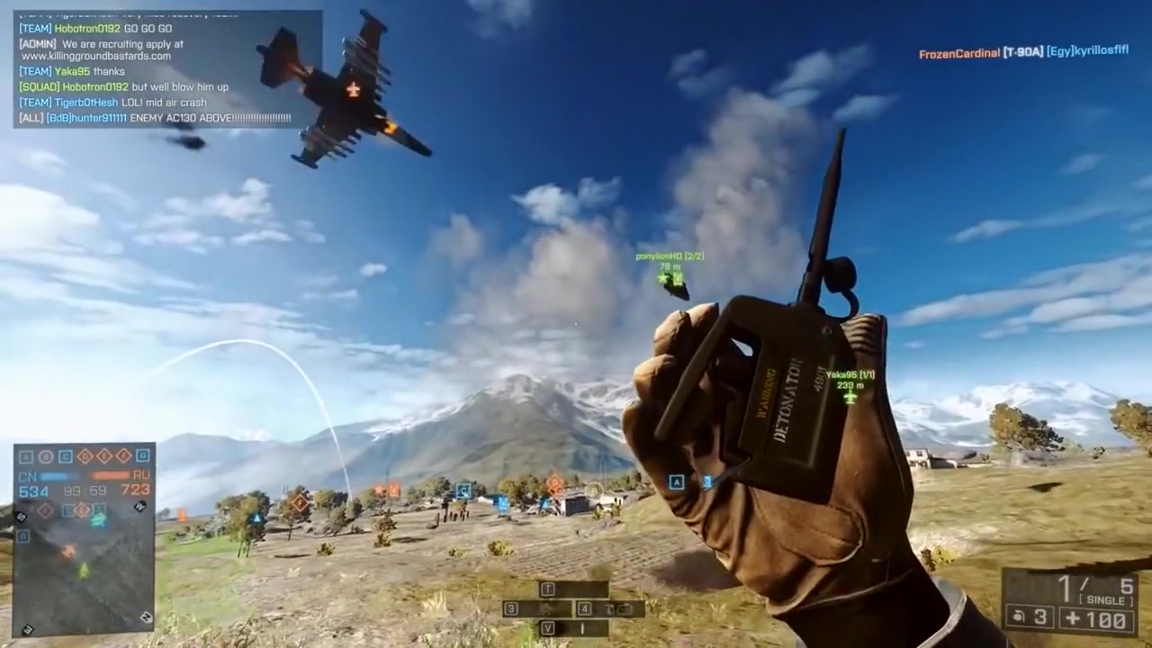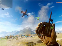 A tank gets launched up in the air and takes out a jet in pursuit at point blank range.